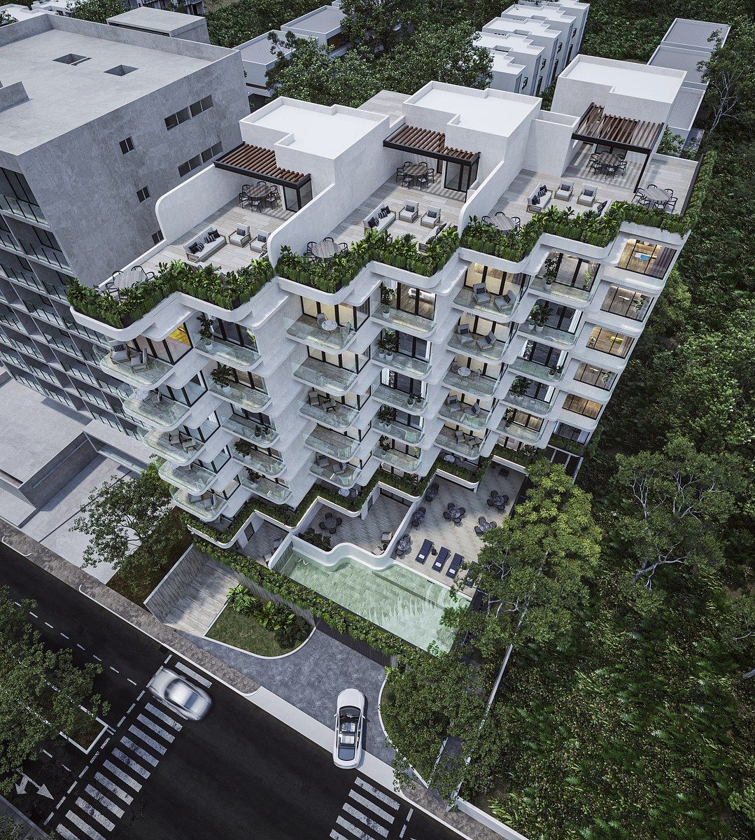 Desde sus alturas, el desarrollo ofrece vistas panorámicas de una ciudad en constante crecimiento, convirtiendo cada espacio en un punto de conexión con una Mérida moderna y vibrante.
