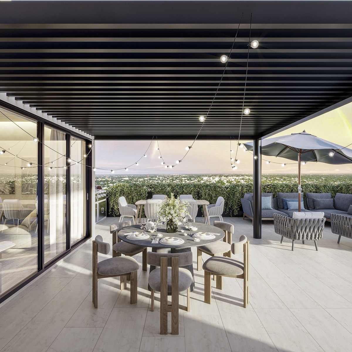 Rooftop con área social y zona de grill